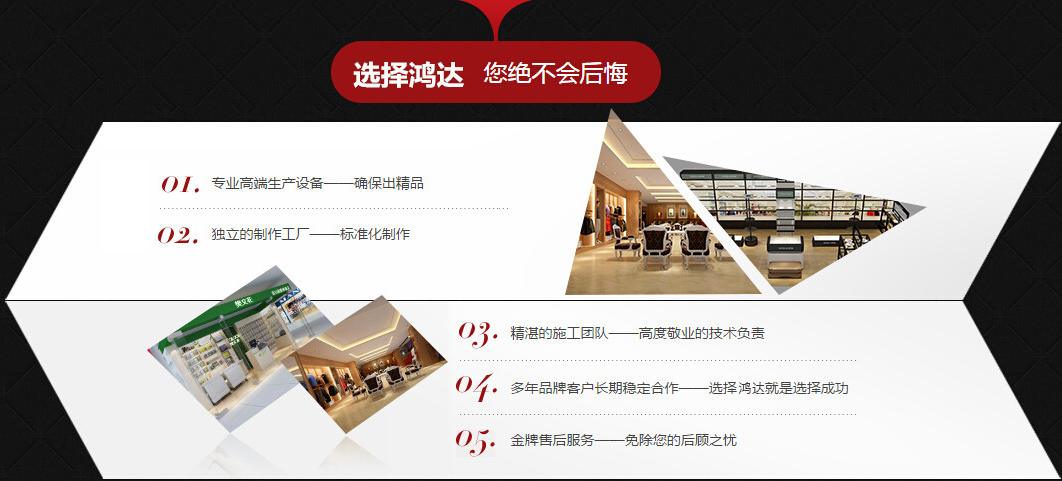 成都博鑫鴻達(dá)展柜有限公司成立于2016年,坐落于成都市新都區(qū)斑竹園鎮(zhèn)順江工業(yè)園區(qū),生產(chǎn)廠房占地面積50余畝,公司擁有員工10余名,公司獨(dú)立生產(chǎn)的產(chǎn)品有:展柜、倉(cāng)儲(chǔ)貨架、庫(kù)房貨架、倉(cāng)庫(kù)貨架、汽車(chē)4S貨架、超市貨架、賣(mài)場(chǎng)貨架、******鈦合金貨架、鈦合金旋轉(zhuǎn)柜、展柜展示柜、各種展架展示架、從事倉(cāng)儲(chǔ)的研制、生產(chǎn)及銷(xiāo)售。
